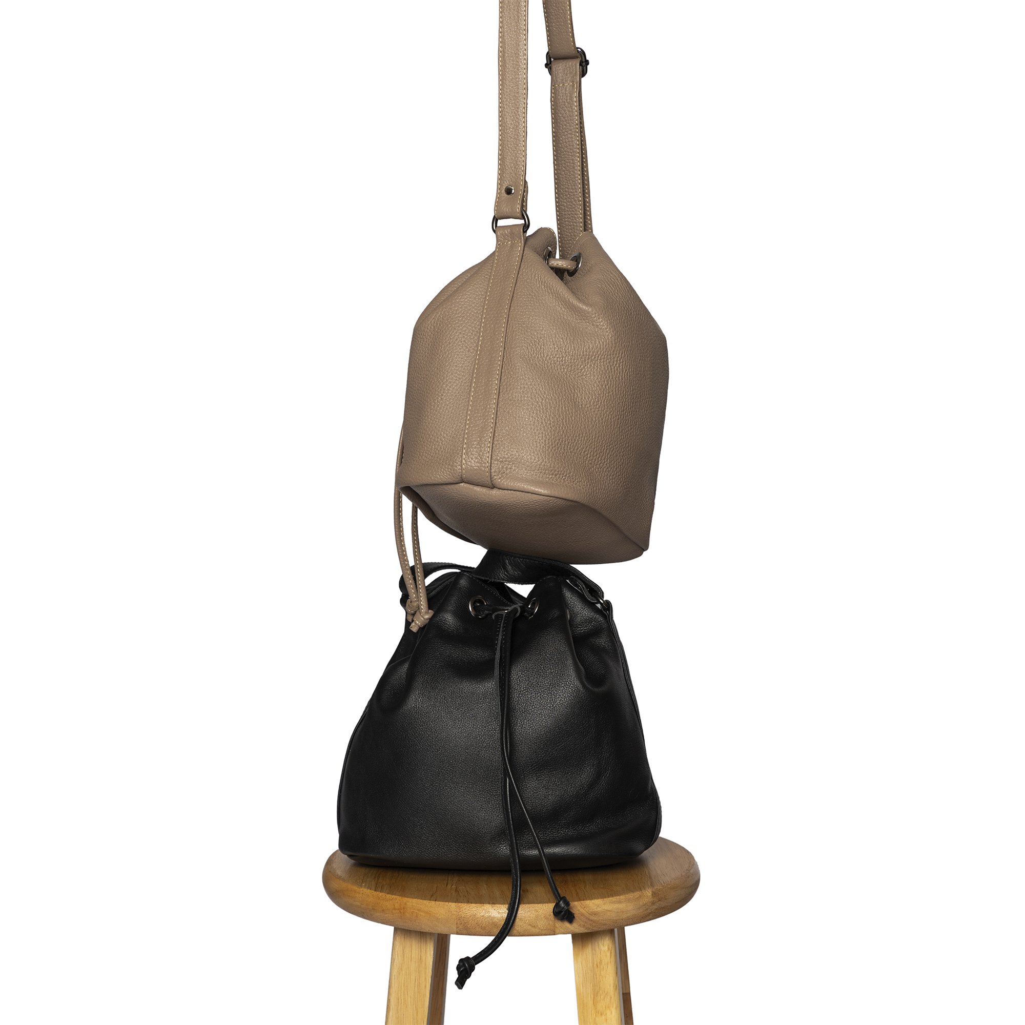 Leather Bucket Bag (Drawstring)